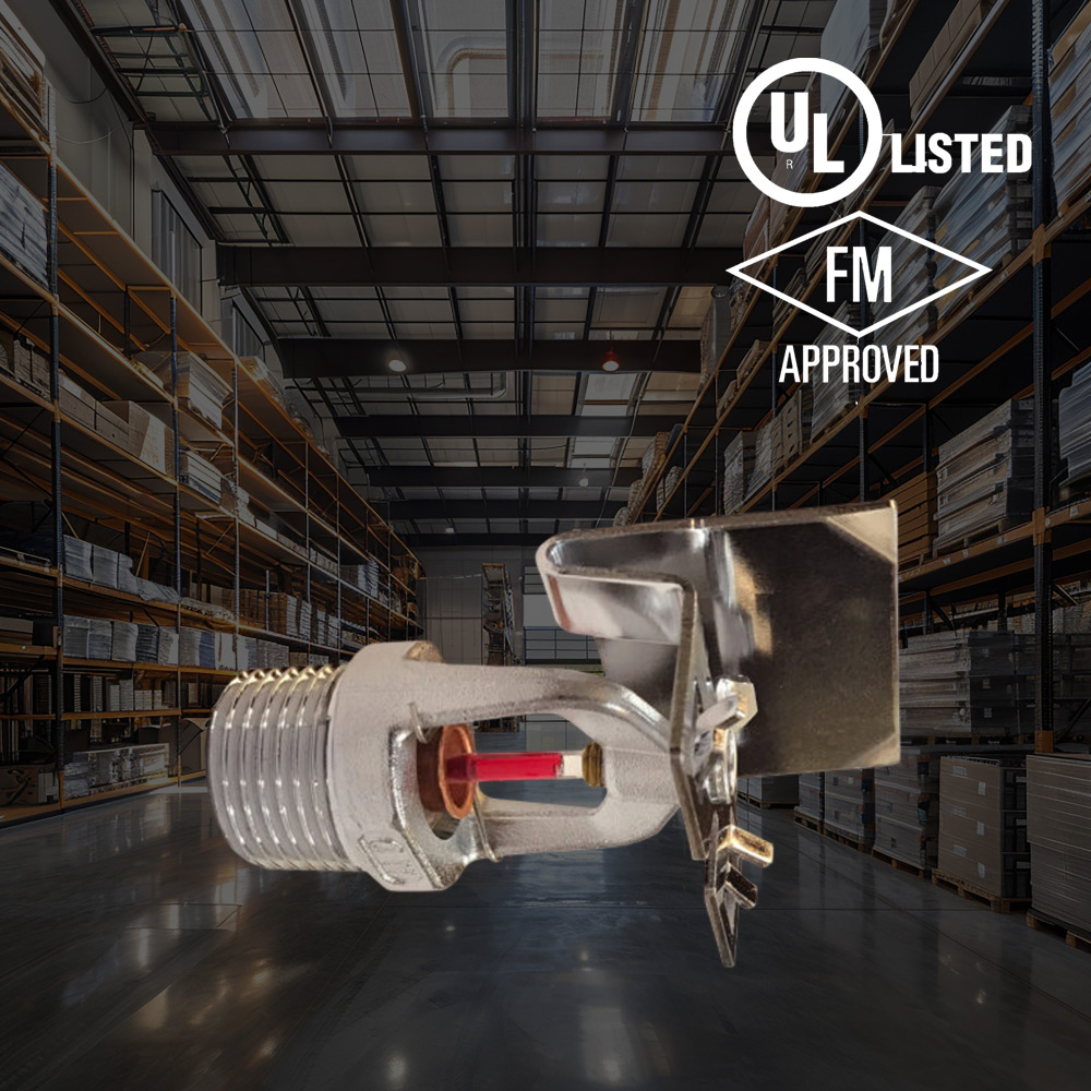 El rociador cuenta con certificación UL. Durante un incendio, el líquido termosensible del bulbo de vidrio se expande, provocando su rotura. El agua que fluye por el orificio del rociador incide en el deflector, formando un patrón de rociado uniforme para controlar o extinguir el incendio. Los rociadores horizontales de pared están diseñados para instalarse a lo largo de una pared o en el lateral de una viga, justo debajo de un techo liso. El rociador también puede instalarse con dos escudos empotrados.